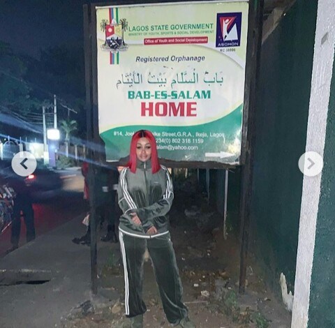 The former stripper took to her Instagram page to reveal that she paid a visit to an orphanage home in Lagos where she donated some items, adding that it was fun filled and she can’t wait to visit again.