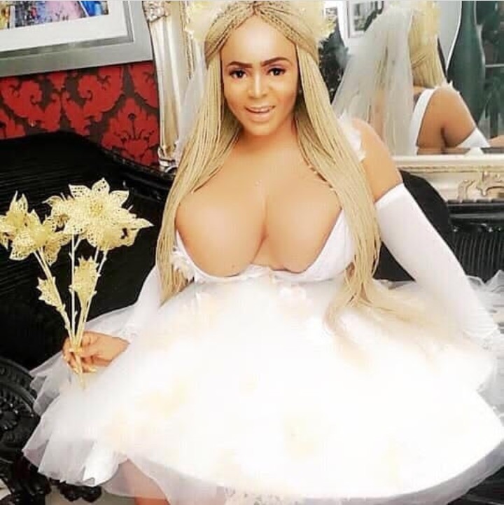 Cossy Ojiakor shared a photo of herself in a skimpy dress with a very low cut neckline that could barely keep her boobs contained.