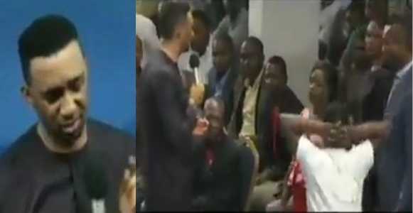 A man beat his wife in church after Pastor Chris Okafor reportedly saw a vision and prophesied that she was the one behind his problems.
