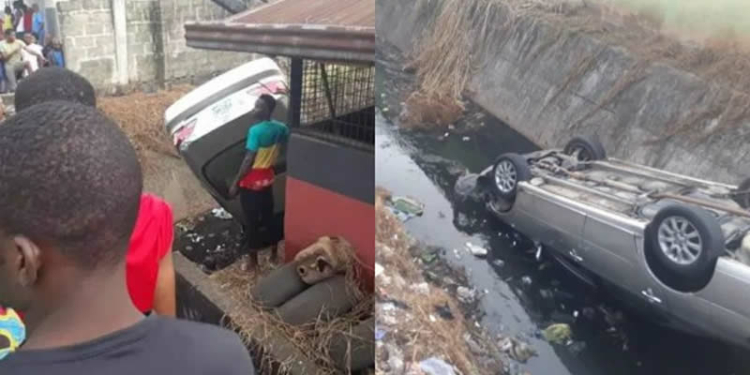 Driver loses control of car, plunges into canal in Abia State (Photo)