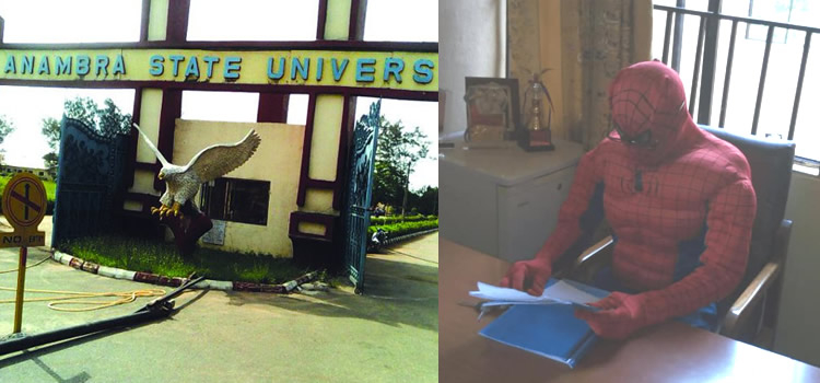 A yet to be identified lecturer of Anambra State University, now known as Chukwuemeka Odumegwu Ojukwu University, in Uli, Anambra state, transformed into Spiderman to teach his students during the ongoing ASUU Strike.