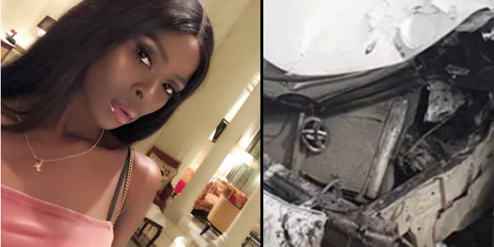 Khloe survived an accident in the car she got as a gift few months ago from ace Nigerian footballer, Obafemi Martins.