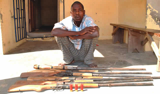 Musa was arrested with six locally-made single barrel guns and three live cartridges.