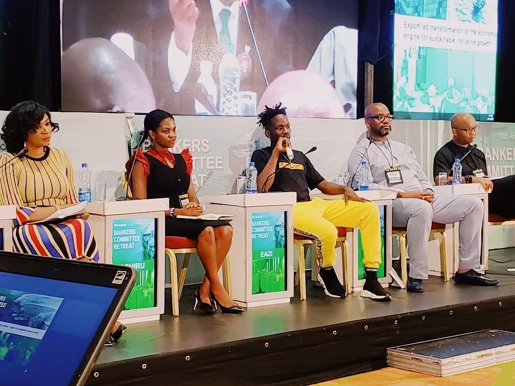 “Today, alongside my mentor @chikanwobi i Sat on a panel at the 2018 Bankers Committee Retreat talking “De-Risking the creative & Service Industries” on invitation of the Governor of the Central Bank Of Nigeria & CEO’s of the Deposit Money Banks in Nigeria! So glad to see the Nigerian banking industry commit towards the future of Nigerian Creatives! Super Excited #LifeisEazi“
