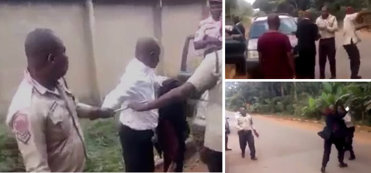 A Lawyer reportedly assaulted a female FRSC official in Enugu and flogged her mercilessly, as captured in a video that has gone viral. Watch the video of the Lawyer assaulting the female FRSC officer below;