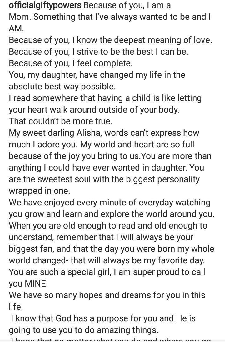 Gifty of Big Brother Naija has shared first photos of her daughter to mark her one year birthday.