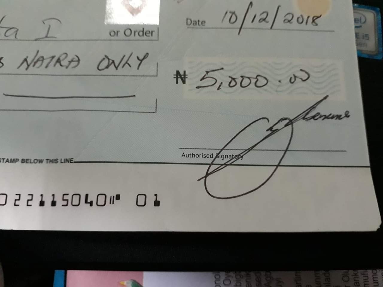 Someone came to my wedding on 1st Dec, and dropped a cheque of N5,000 for us to cash. I called him two days later and he said we can cash the cheque anyday from the 10th of Dec.