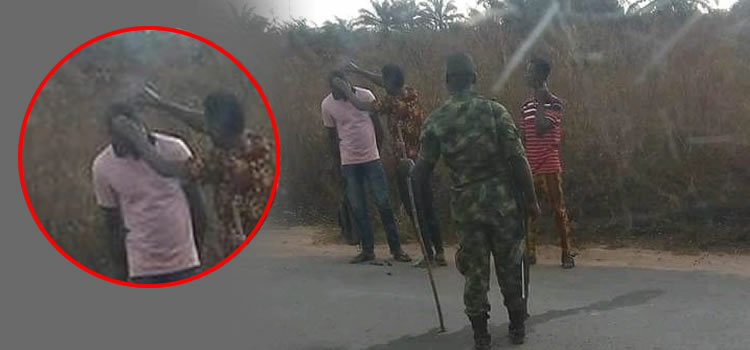 I’m traveling back from the village and these soldiers stopped our bus. First, this one questioned our driver for playing music that reminds him of his days in the ‘depot.’ Then he asked these three guys to come down for carrying full hair. Now they are making them barb each other with the blunt razor they forced our driver to provide.