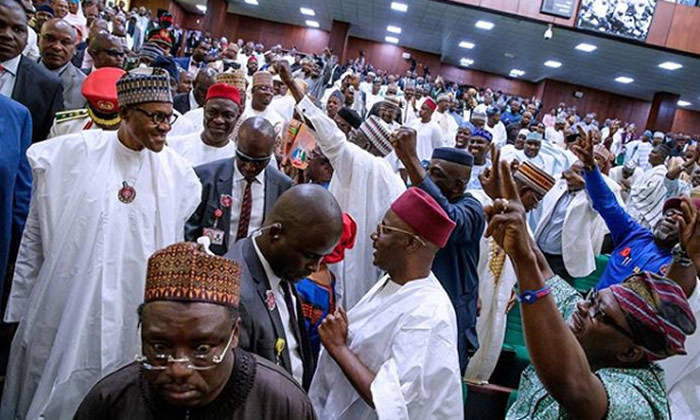 Lawmakers cheering President Muhammadu Buhari during the presentation of 2019 Budget.