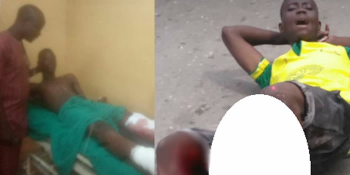 The accident took place Tuesday, December 18, at Abraham Adesanya estate, in front of Jefferey’s Plaza, Ajah, at about 2 pm. It left one of his legs terribly crushed that his bones and tissues were visible.