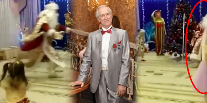 The Russian Santa Claus – known in Siberia as Grandfather Frost – , while meeting young children, was performing energetically for the kids, when he suddenly stood still and fell backwards. Some of the kids thought it was part of the game, which involved them touching their noses, and they ran towards him laughing.