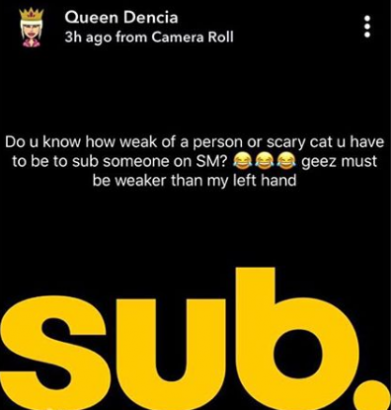 According to Dencia, it is only a weak person that subs others on social media and it is only a guilty person who catches the sub. She further asked those throwing and catching subs to grow balls in 2019 and come at each other so we all get to know it’s real.