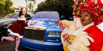 E-money’s wife Juliet Okonkwo posed with her Rolls Royce Phantom for a cute photo.