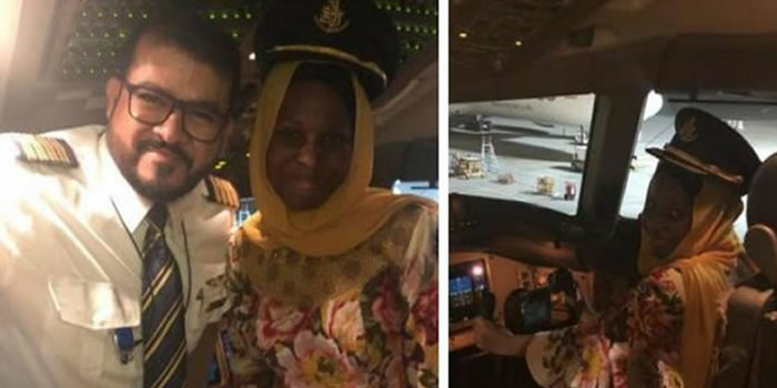 A 14-year-old girl identified as Rahama Nura is exciting pilots in their cockpit due to her knowledge of basic flight controls and navigation.