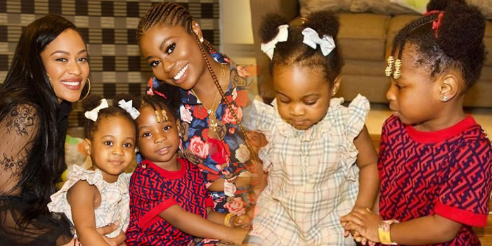 This is a rare photo of Davido‘s two babymamas; Mandy, Sophie Momodu and her daughter, Imade as well as Hailey.