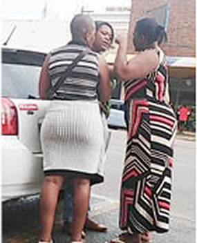 The wife who was angered by the incident unleashed her wrath on the two after they failed to give answers to her inquiry, lodging an attack on the girlfriend Carol Matanga, before turning to her husband who was already trembling with fear.