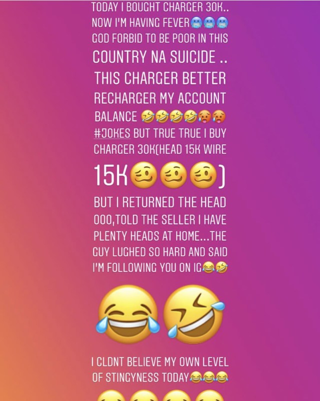 Actress Tonto Dikeh took to Instagram to cry out after she purchased an original iPhone charger for N30,000. The actress revealed she was forced to give back the head of the charger and take only the cord.
