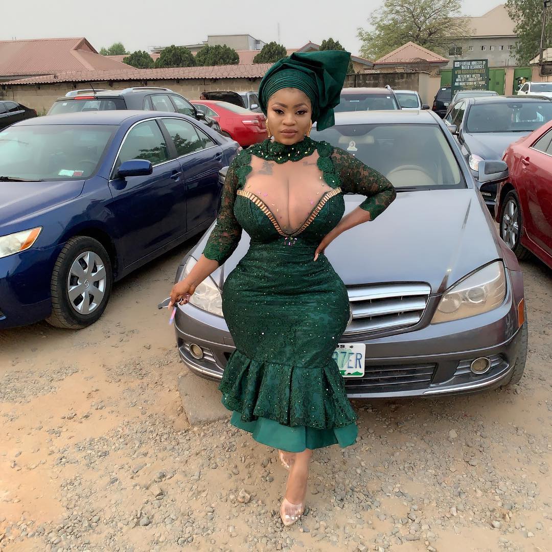 Instagram celebrity, Roman Goddess, attended a wedding yesterday wearing this revealing dress which flashed her gigantic boobs.