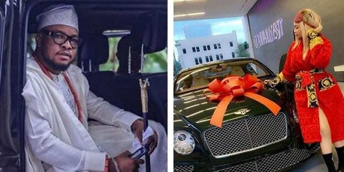 Oluwaseyi gifted his wife, identified as Grety, with a Bentley Continental said to be worth about $236,100 (N85,940,400). He explained in his caption that she has been through a lot with him and deserves the best.