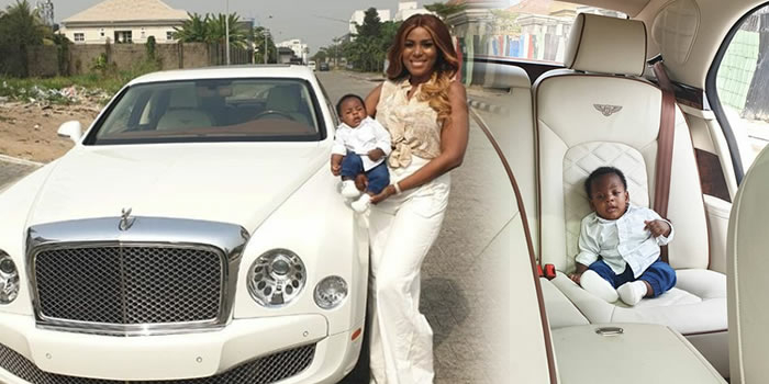 Linda Ikeji, a successful Nigerian gossip blogger has took to her Instagram page to show off her newly landed Bentley Mulsanne she ordered for her kid while still pregnant.