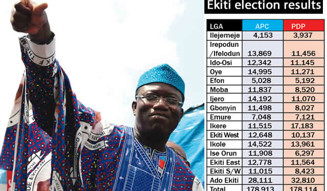 Recall that the Independent National Electoral Commission had declared Fayemi and the All Progressives Congress polled a total of 197,459 votes to defeated Olusola-Eleka and the PDP who placed second with 178,121 votes in the July 14, 2018 election.