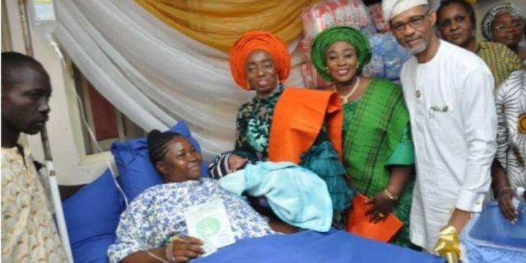 Wife of Lagos State Governor, Dr Ibijoke Sanwo-Olu, today, welcomed and presented gifts items to the first babies of the year in four state-owned health facilities.