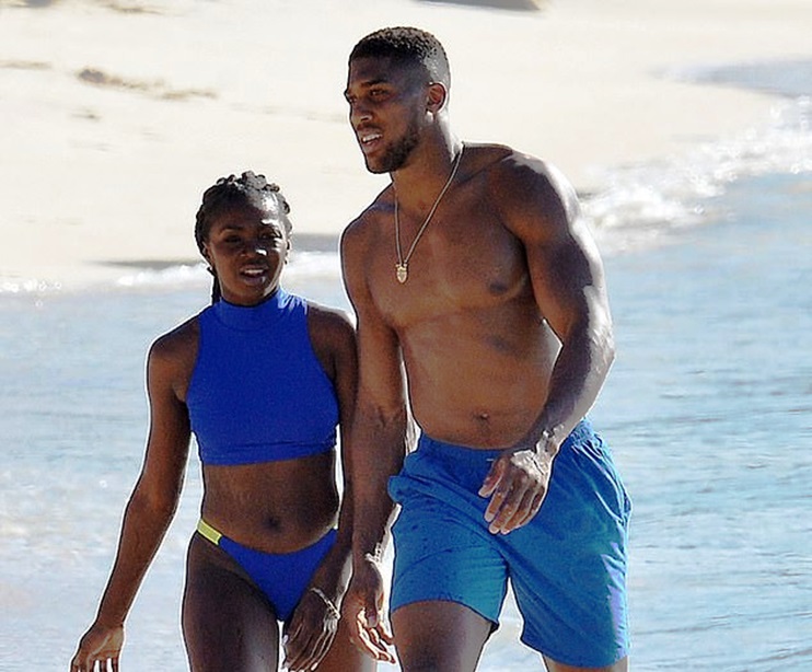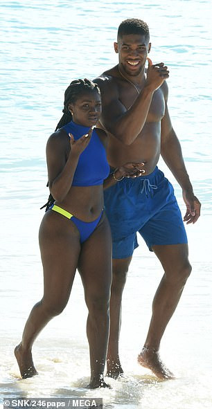 On Thursday afternoon, the shirtless British-Nigerian boxer was pictured larking around with a beautiful lady, as they both enjoyed a stroll at the beach.