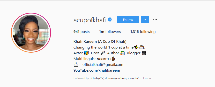 Former Big Brother Naija housemate, Khafi has hit one million followers on Instagram and she is celebrating in a very special way.