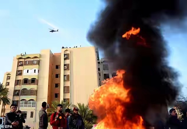 Members of the Iran sponsored Iraqi Shiite ‘Popular Mobilization Forces’ armed group and their supporters set fire outside the U.S embassy inside the high security Green Zone area, in central Baghdad on Monday, leading to the evacuation of the US Ambassador to Iraq from the Embassy.