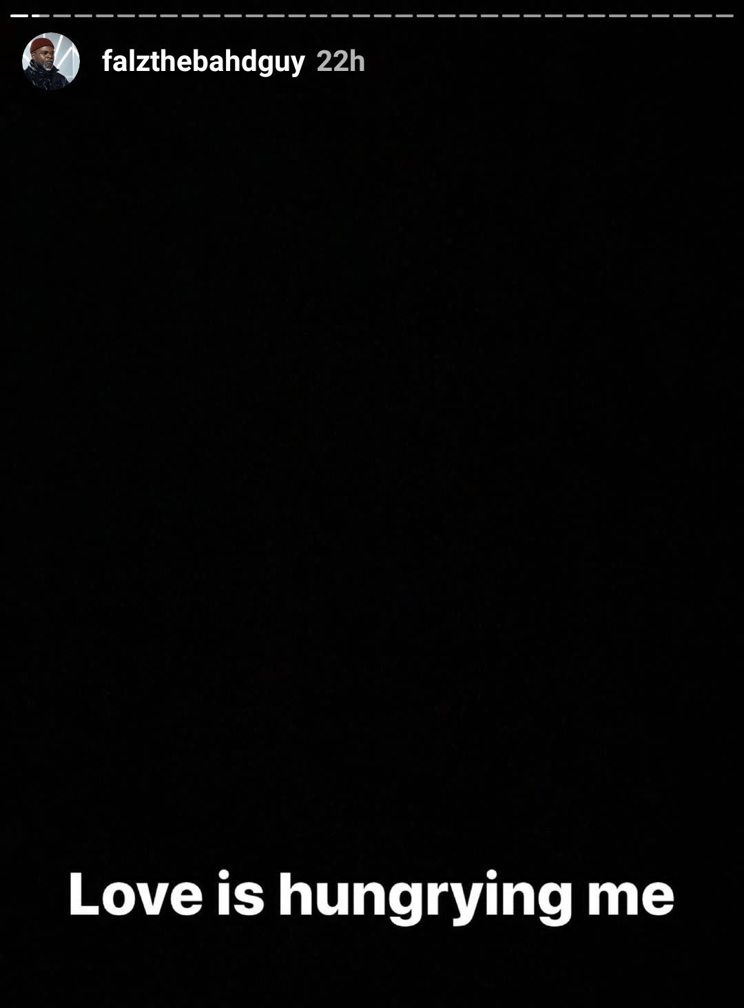 Falz made the confession this morning on his Instagram story with a short statement, saying: