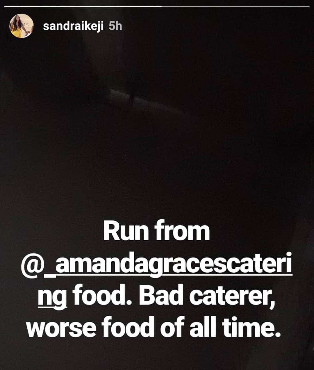 Reacting to the public humiliation, the caterer narrated everything that transpired during the day she served the meals at Sandra’s event, and how Sandra called her a day later to return her money because her girls were purging.