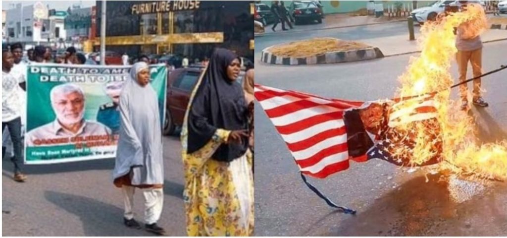 The angry protesters marched the streets of Abuja chanting hate songs and slogans like “Death To America.”