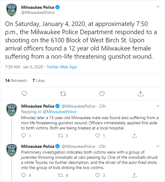 According to Milwaukee police, the pair were playing with a group of children on Saturday evening before the shooting occurred.