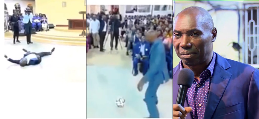 In the video,that has gone viral, each time Samuel kicked the ball towards a worshiper, the believer would wobble and stagger in a weird fashion before dropping to the ground. As soon as they were down, the worshipers shivered and trembled as the supposed delivery made its way through their bodies.