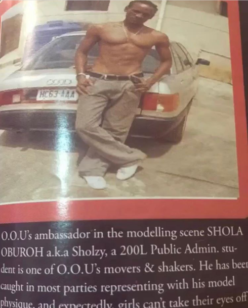 In the magazine, Omashola was described as one of the movers and shakers of the school. He was said to attend almost all the parties representing the school with his model physique and he was a ladies’ man.