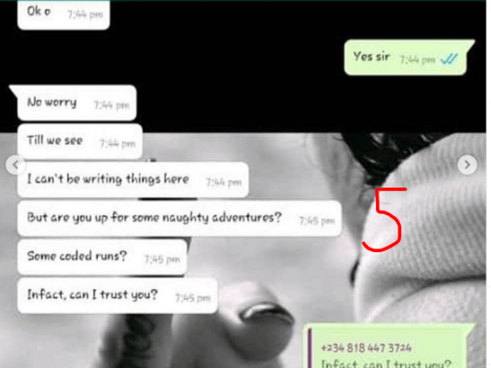 “A senior Maths Teacher of ( APATA MEMORIAL SCHOOL (okota Isolo )in chat with an SS3 students Requesting for “S*X” As seen in the screenshot the teacher by name is MR.RAYMOND (HOD of Mathematics)requested to have ‘’SEX” which he identified as (CODED RUNS) with a senior secondary student of Apata memorial school.”