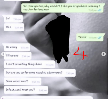 The lady took to her Instagram to leak an alleged chat of the teacher requesting for sex from the teenage student of the school.