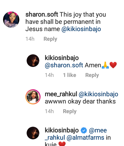 She replied a few of the comments with “Amen”. See photos and comment below…
