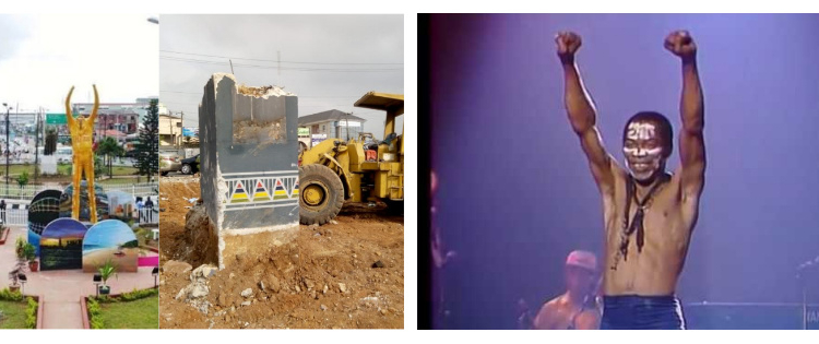 PHOTOS: Lagos State Government Pulls Down Fela Kuti’s Effigy At Allen Avenue