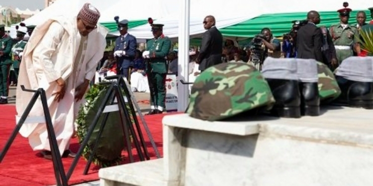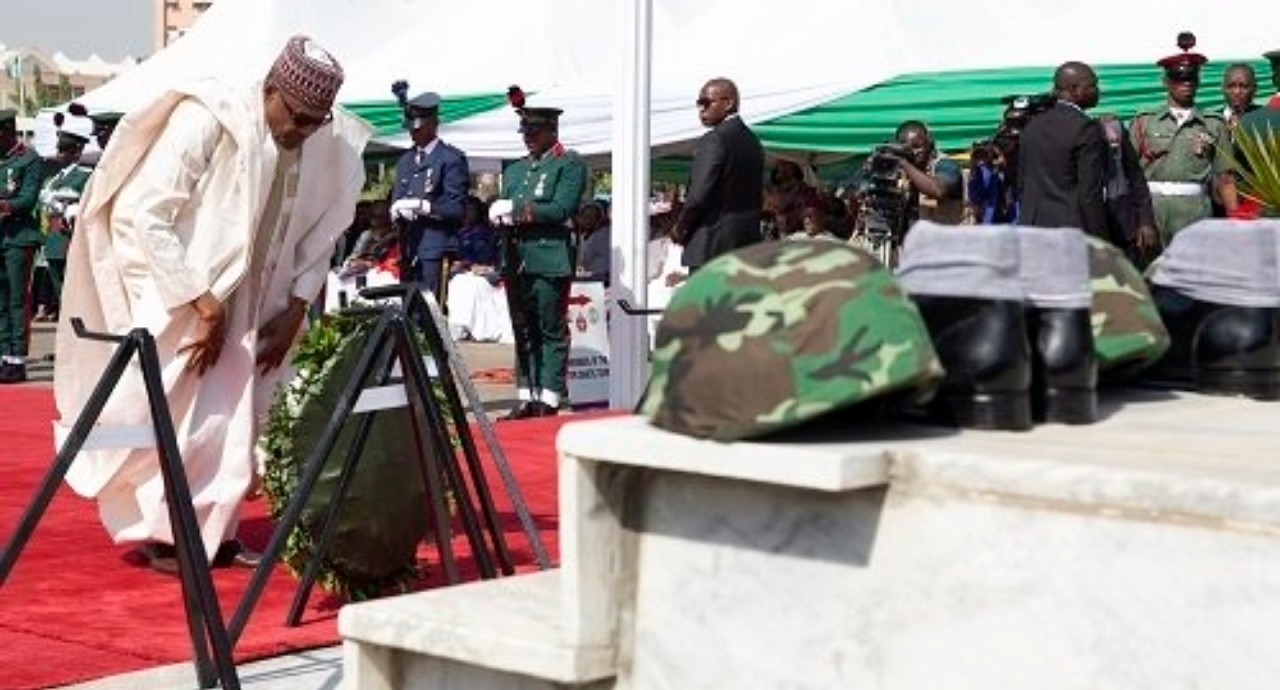 NAN observed that after the one-minute silence for the fallen heroes, Buhari and Vice-President, representative of the Senate President and the Speaker, House of Representatives Femi Gbajabiamiala laid wreaths at the tomb of the unknown soldiers.