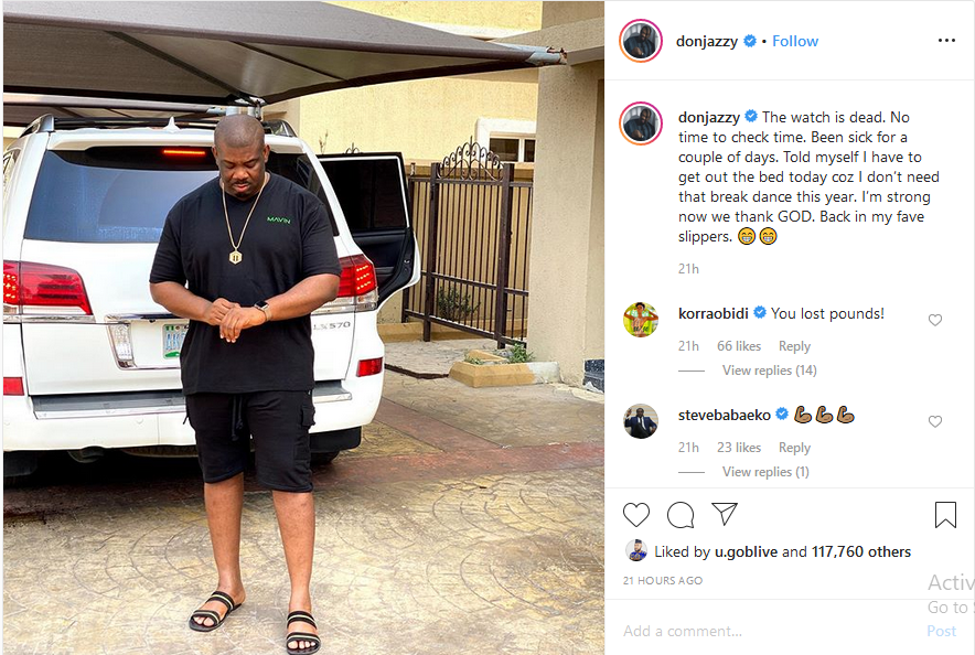 Mavin records label boss Don Jazzy has taken to his social media page to disclosed to fans that he has been sick for a while but is stronger now.