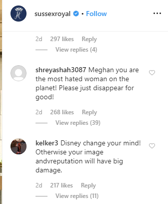 One Instagram user wrote: “Meghan you are the most hated woman on the planet! Please just disappear for good!”