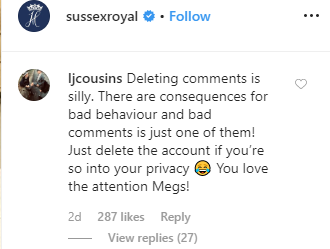 The royal couple’s social media handlers have been deleting some of the comments but this act angered Instagram users even more and they are calling them out for it.