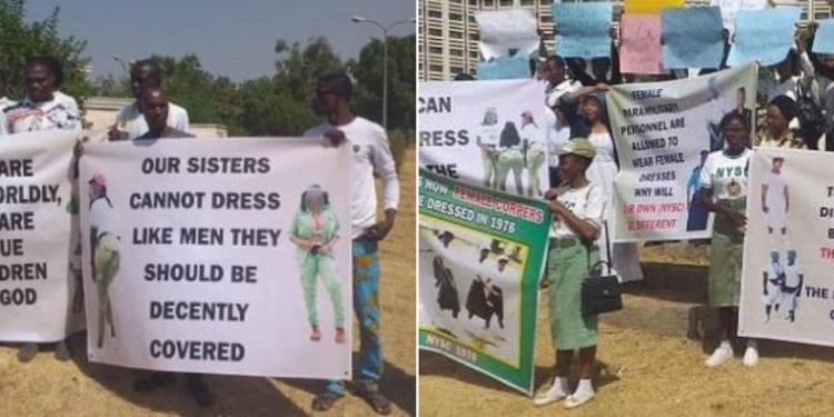 An advocacy group, Serve With Skirts Movement protested against the National Youth Service Corps (NYSC) authorities, yesterday January 16, demanding the inclusion of skirts in the youth initiative’s uniform.