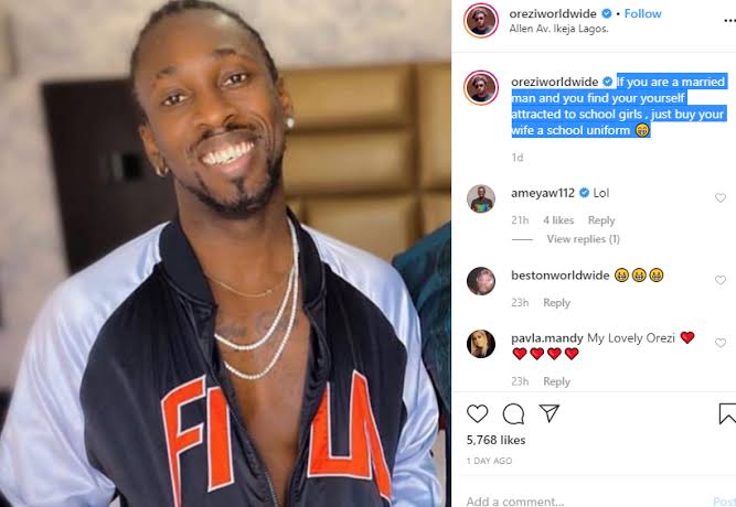Singer Orezi advises men what to do if attracted to school girls