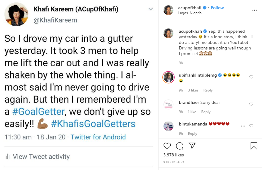 The recently engaged star further disclosed that she remembered she is a goal-getter after almost saying she won’t be driving over the incident which occurred yesterday January 17.