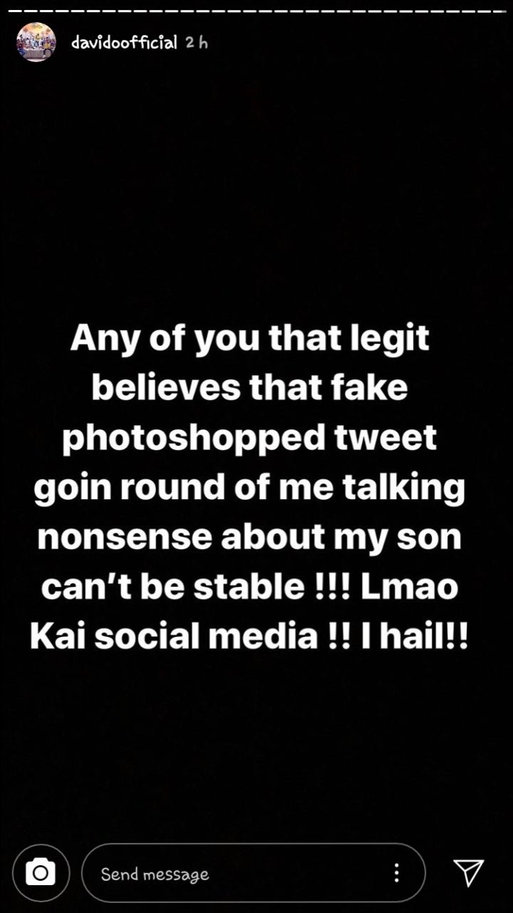 The risky crooner took to his Instagram story to debunk the tweet, as he claimed that it is ‘Fake and photoshopped’.