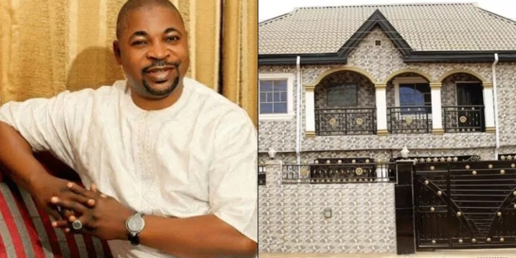 Musiliu Akinsanya aka MC Oluomo, Lagos NURTW boss, is celebrating his wife, Alhaja Temitope Adunni Akinsanya, who just completed her house.
