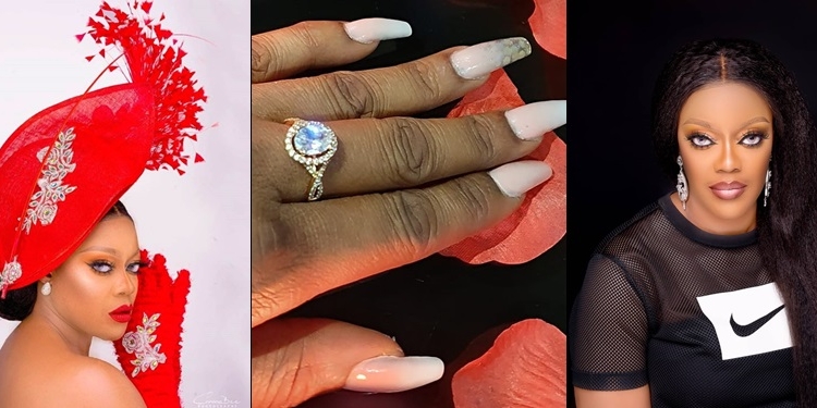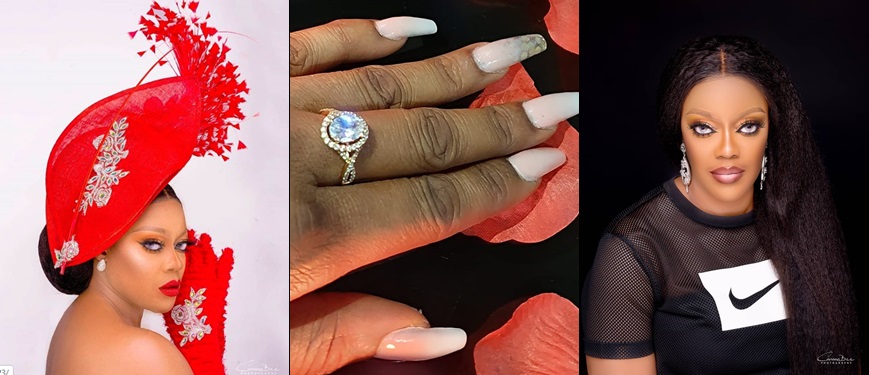 The Nollywood beauty who was recently spotted licking the face of actor Stanley Igboanugo, took to social media to make the announcement as she shared a photo of her stunning ring.