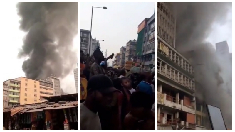 This is a fire 🔥 incident currently happening in balogun Lagos island as of now about two buildings are on fire pic.twitter.com/5HgoEAoykn